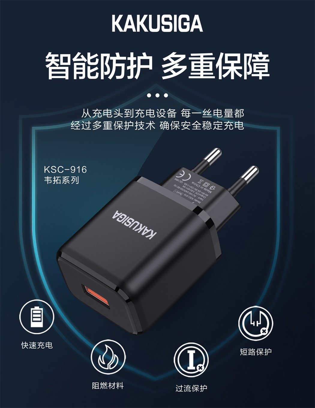 产品名称:韦拓系列 单口智能充电器(欧规)