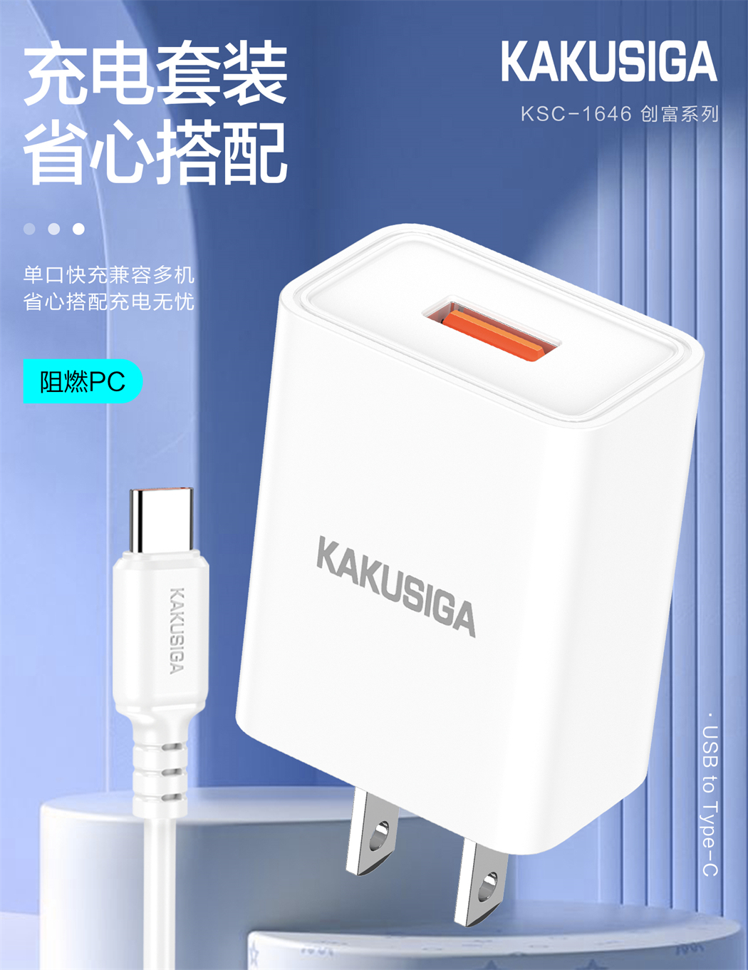 产品名称:创富系列 单口充电器套装 USB to Type-C(美规)