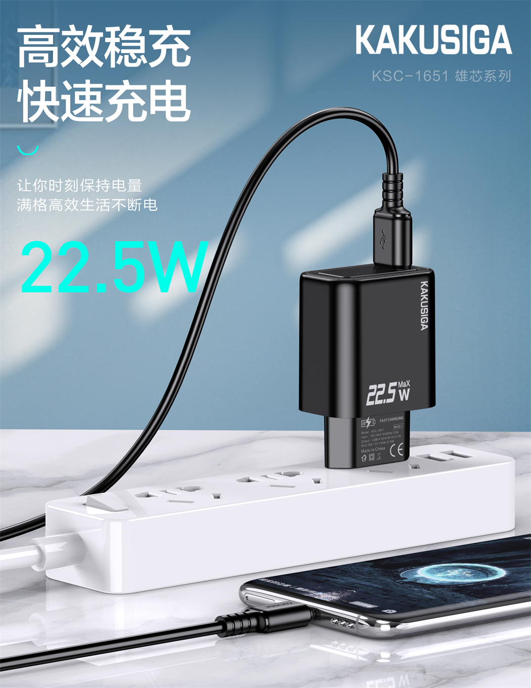 产品名称:雄芯系列 22.5W充电器(欧规)