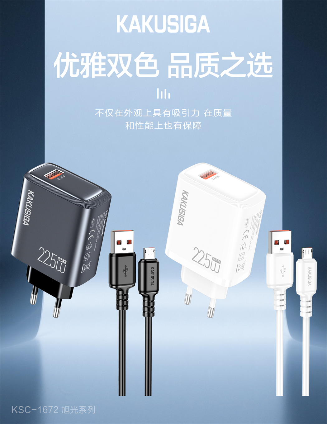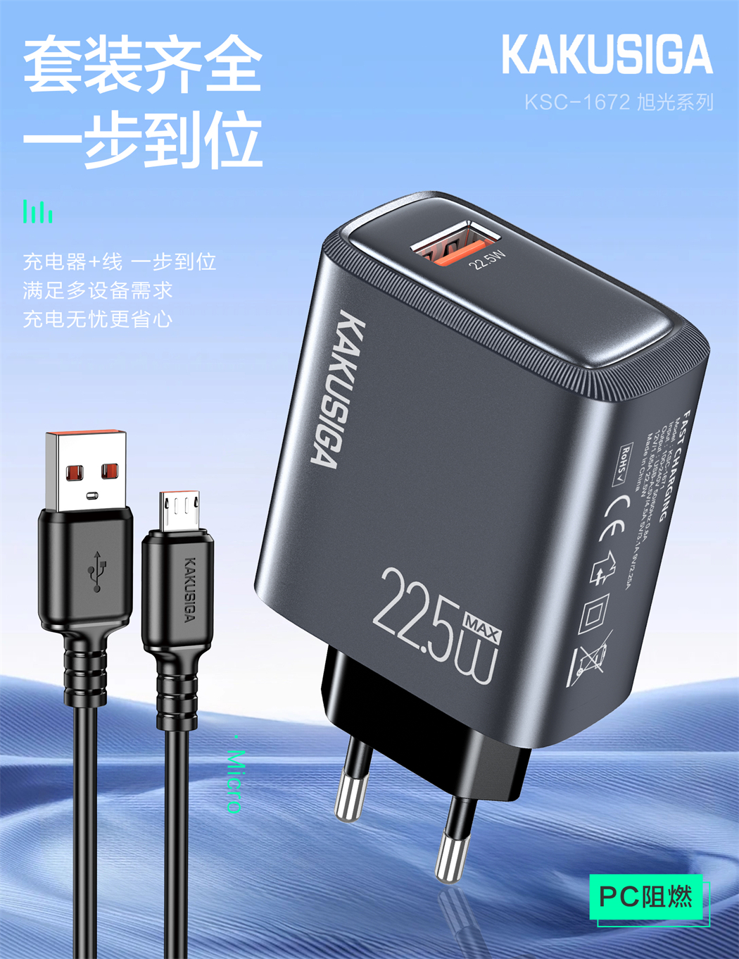 产品名称:旭光系列 22.5W充电器套装(欧规)USB to Micro