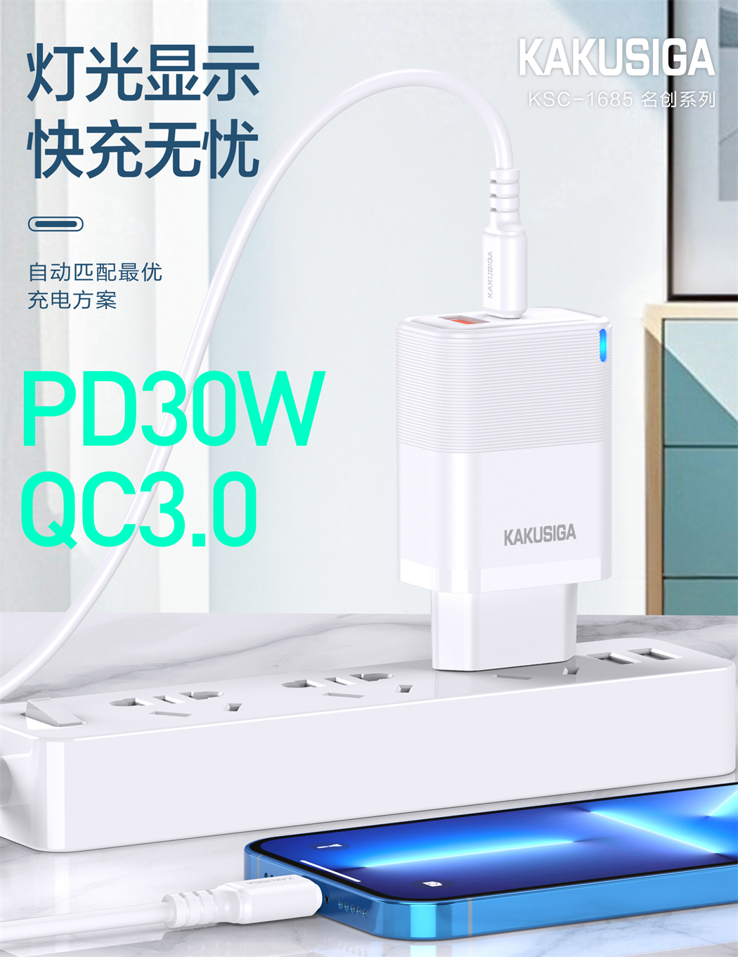 产品名称:名创系列 PD30W+QC3.0充电器(欧规)