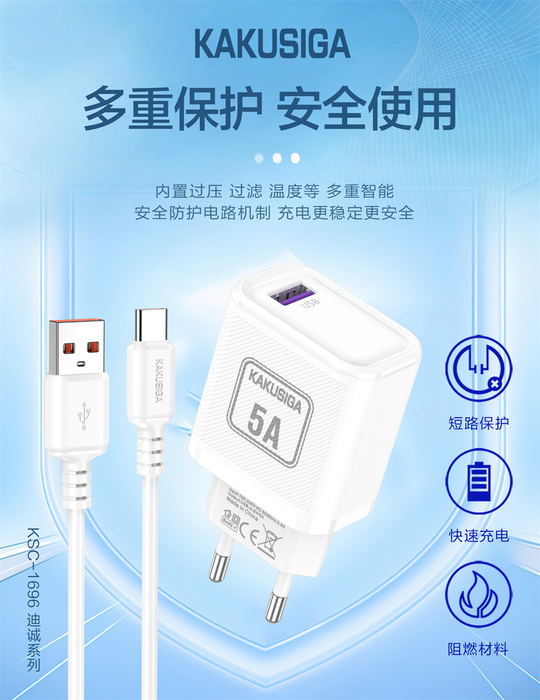 产品名称:迪诚系列单口充电器套装(欧规)USB to Type-C