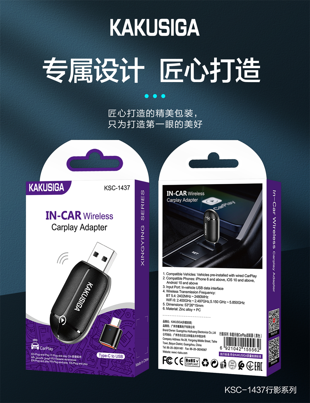 产品名称:行影系列车载无线CarPlay适配器