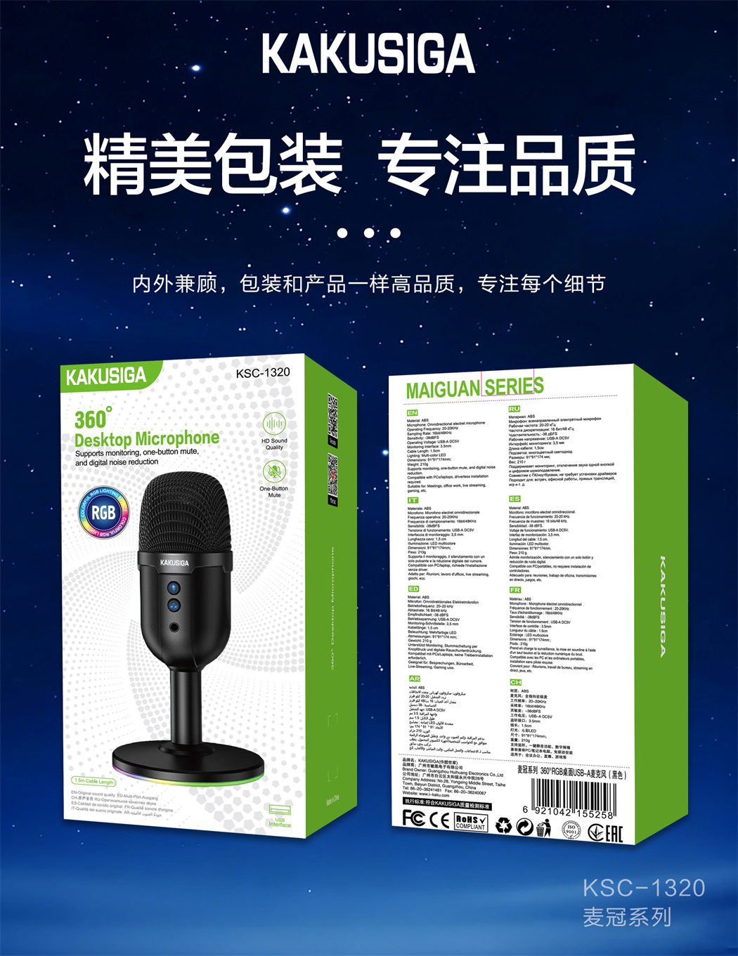 产品名称:麦冠系列360°RGB桌面USB-A麦克风