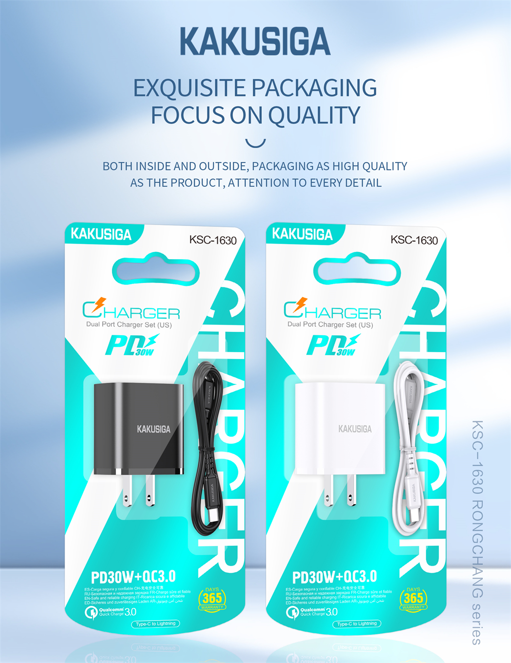 name:RONGCHANG series PD30W+QC3.0 charger set (US) Type-C to Lightning