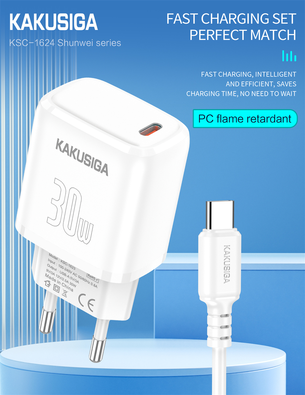 name:Shunwei series PD30W charger set (European standard) Type-C to Type-C