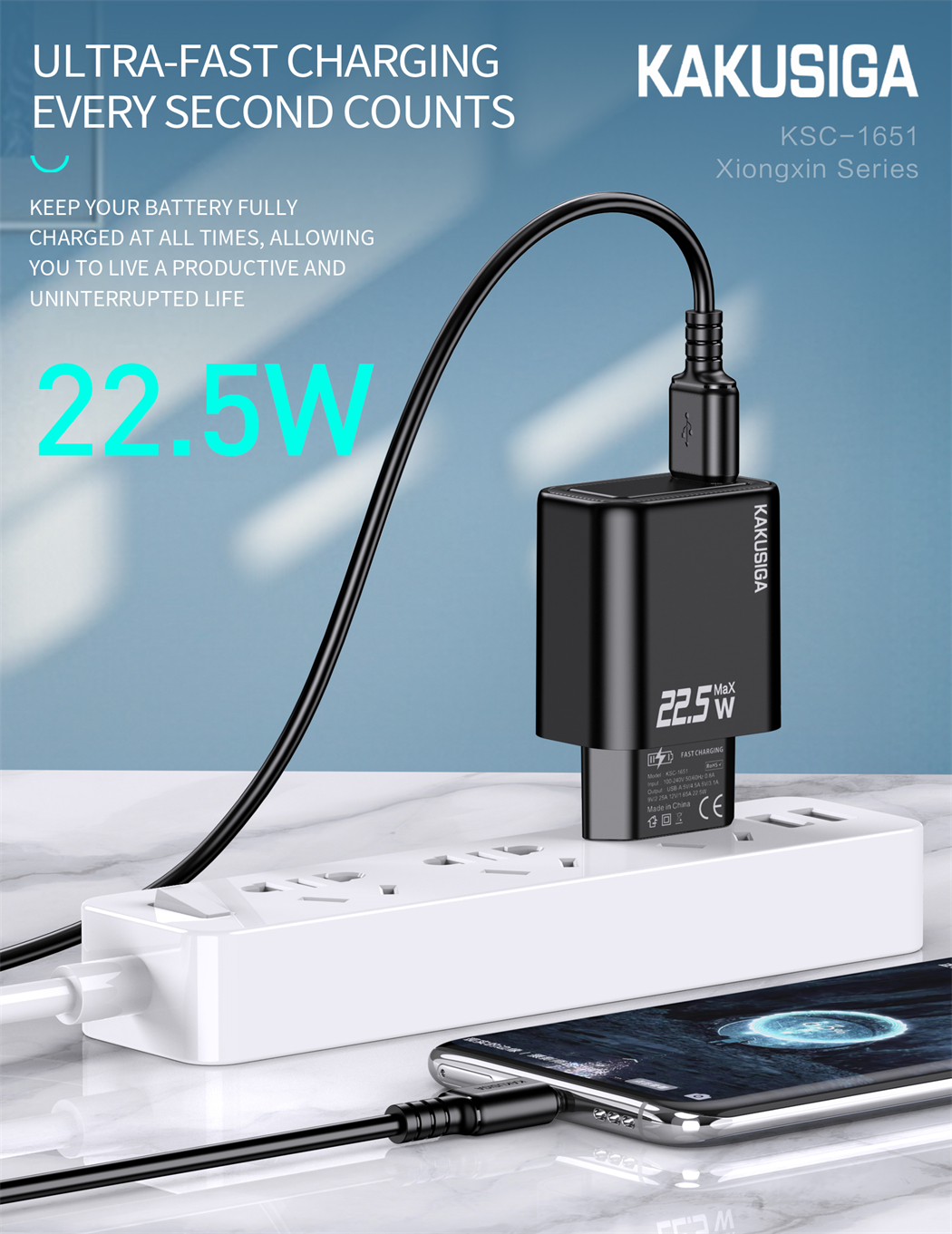 Output:USB-A:5V/4.5A 5V/3.1A 9V/2.25A 12V/1.65A 22.5W