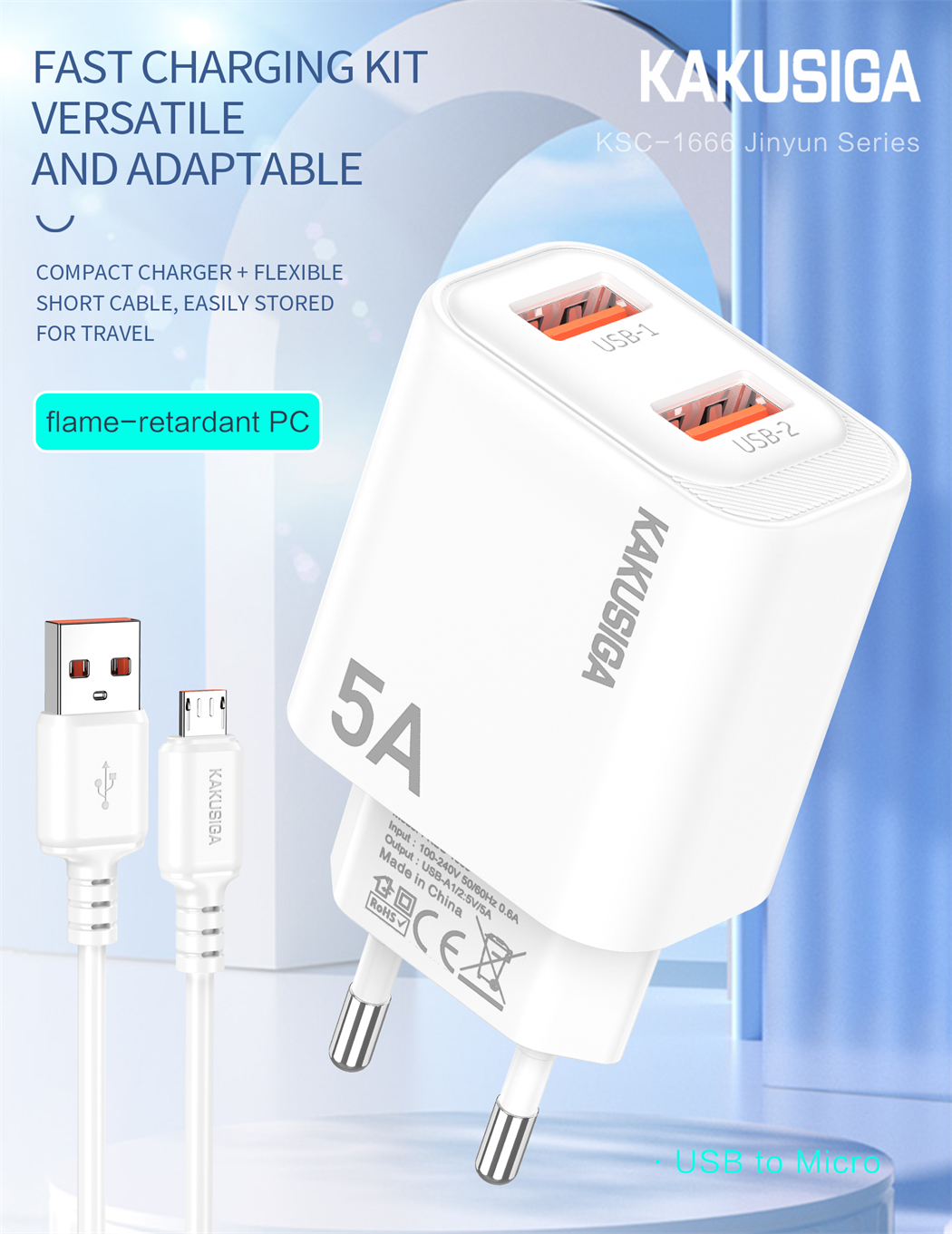 name:Jinyun Series Dual-Port Charger Set (EU) USB to Micro