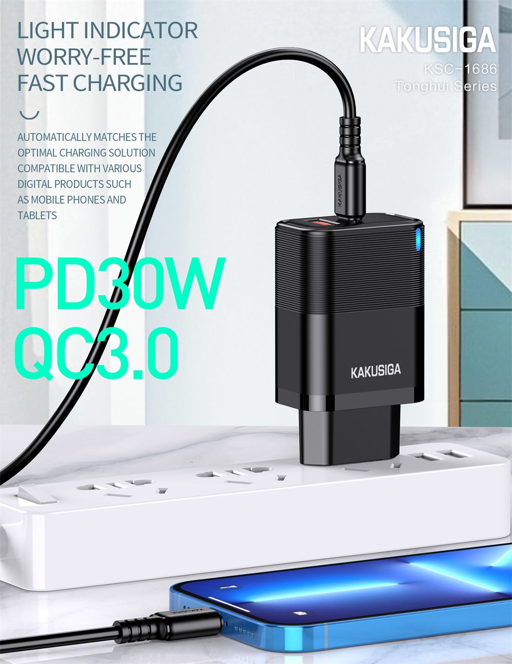 name:Tonghui Series PD30W + QC3.0 Charger Kit (European Standard) Type-C to